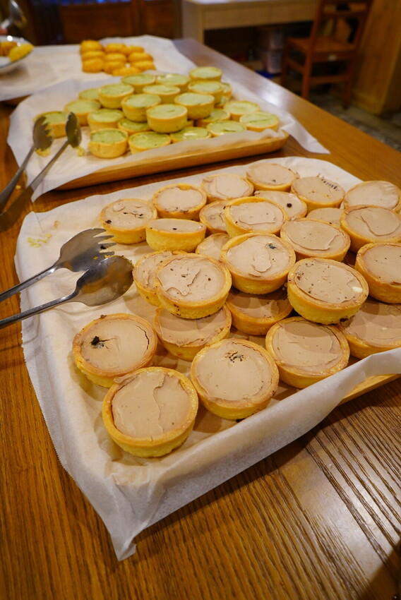 這天提供的點心有抹茶塔、巧克力塔和奶油餅乾