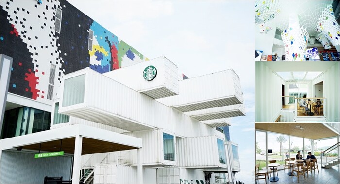 STARBUCKS 星巴克 (洄瀾門市)亞洲第一間貨櫃星巴克,世界最大的磁磚壁畫,停車超方便
