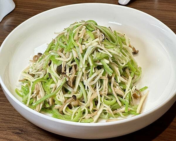 裡頭有青椒絲、蒜苗絲、辣椒絲