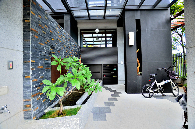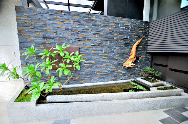 入口的玄關處,一旁有水池造景,聽說這些都是出自老闆之手