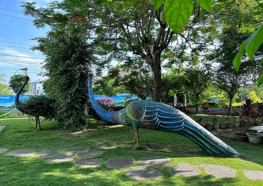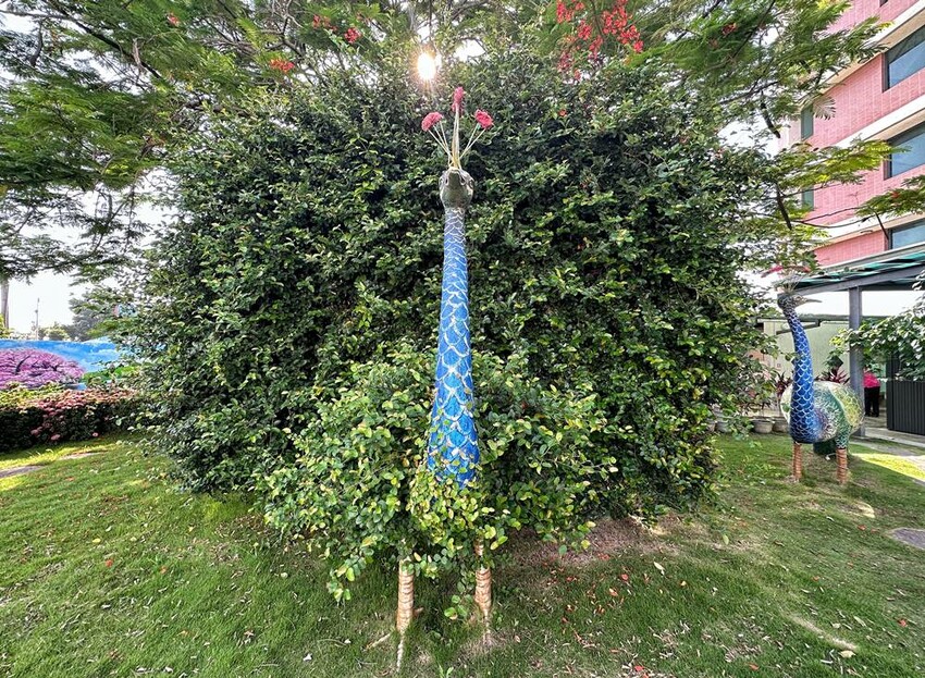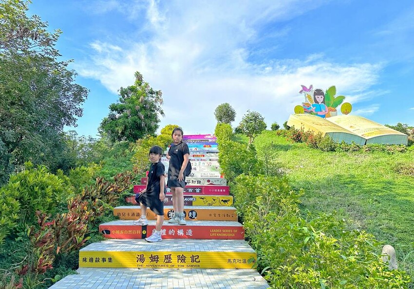 小班長的家園區佔地非常寬敞,有著像是歐風城堡的建築以及最吸引人想要拍照打卡的巨大書牆,很可惜來訪的這天,書牆下都被民間表演團給佔據了,所以就無法近距離的拍照,但一旁草地上還有著孔雀造景可以拍照。