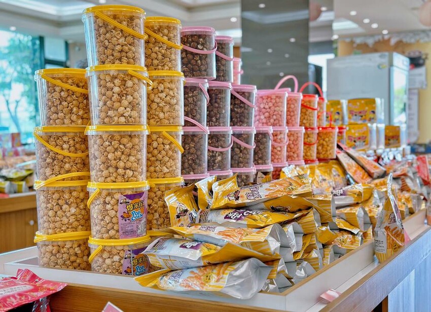 小班長的家除了人人都知道這有販售著琳琅滿目的古早味零食,戶外也有販售熟食,像是辣木燉糯米雞、紅龜粿、菜粿、蘿蔔糕、肉粽、茶葉蛋等等,但這天我們是直接走進福利社,不囉嗦的買起我們要吃的零食,也試吃零食及試喝咖啡,最後採購完還拿到贈品-順澤宮的幸運冠軍帽。