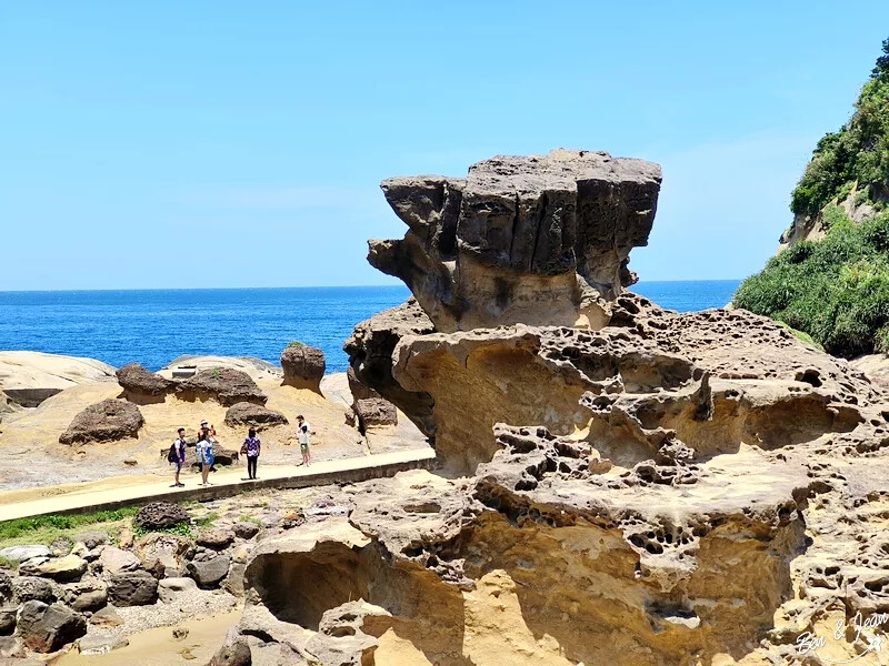 野柳這一帶因為地質的關係,加上風化、侵蝕等作用,造成現在怪石嶙峋,造型奇特,所以吸引了許多遊客前來觀賞