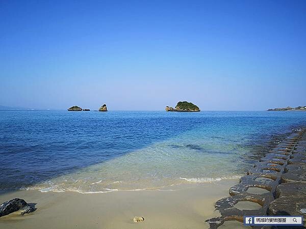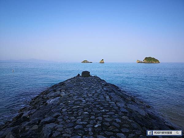 陽光灑在海面上,讓海水更藍,眼前右邊的礁岩就像一隻烏龜。