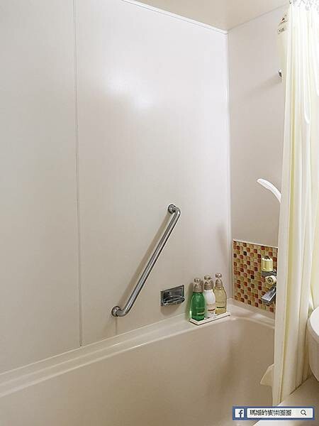 有浴缸可泡澡,剛好可用房間附的泡澡粉來放鬆一下,基本的洗髮精、護髮乳和沐浴乳是大瓶裝的,味道都蠻好聞的。