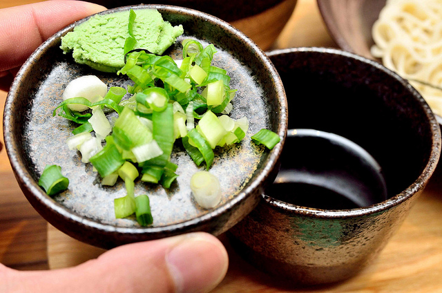 沾了芥末醬汁的蕎麥麵吃起來更滑順
