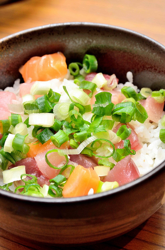 有鮪魚,旗魚,鮭魚灑上大把蔥花的海鮮丼