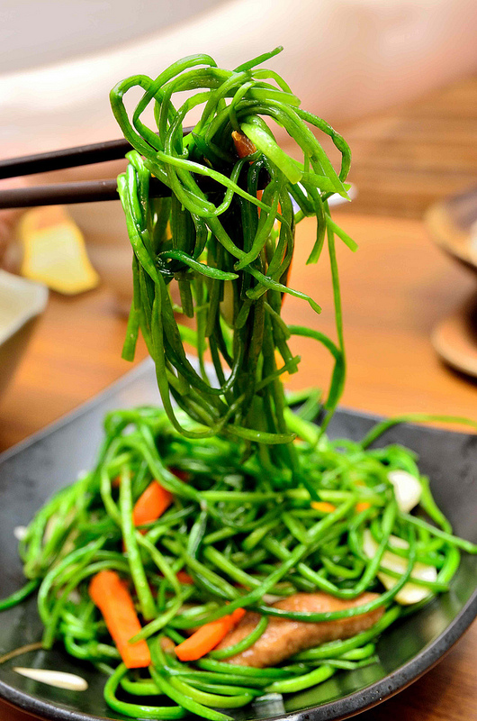 調味上有淡淡的蒜香,鹹度也很棒,水蓮的清甜脆爽口感展露無遺