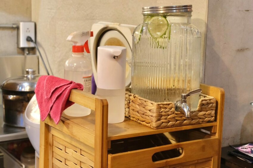 ▼【硬派主廚的軟嫩料理】採取自助式用餐模式,提供檸檬水、餐具、衛生紙等自行取用。
