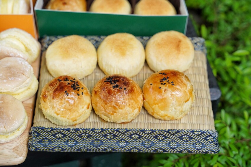 金黃色澤的「蛋黃酥」絕對是人手一盒,外皮酥香脆口且不油膩,內餡烏豆沙很香且不甜膩,最讓我驚艷是中間巨大的鹹蛋黃,完全沒有蛋腥味,濕軟且不乾口、鹹香不膩口!