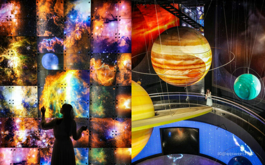 接著來到展示場二樓的「銀河系區」,很快就會看到這個IG的超熱門打卡景點,沒錯~就是一整面浩瀚的銀河系牆啦(轉圈)~在這邊拍照超級有FU的,就像是身處宇宙中,被璀璨的銀河系包圍一樣!當然這一區也是非常有教育意義,可以認識到恆星的一生,並且了解各種星體像是黑洞、星雲、星團的專業知識。