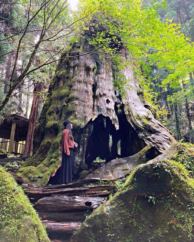 經歷了數千年的歲月、火災及人為砍伐,約需要20人才能環繞一圈的紅檜古木只剩下中空的根幹部分留存,卻也讓千古紅檜更帶有另一番不同的風情。千古紅檜最好的拍照角度就是從下往上取景。