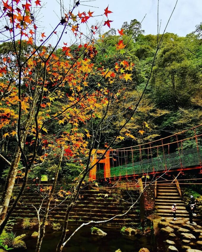 想要觀看正面的松瀧岩瀑布的話,九九吊橋會是松瀧岩瀑布最好的觀瀑點,一片翠綠中的紅色吊橋,吊橋本身也是一個讓人忍不住一直拍照的好景點喔!