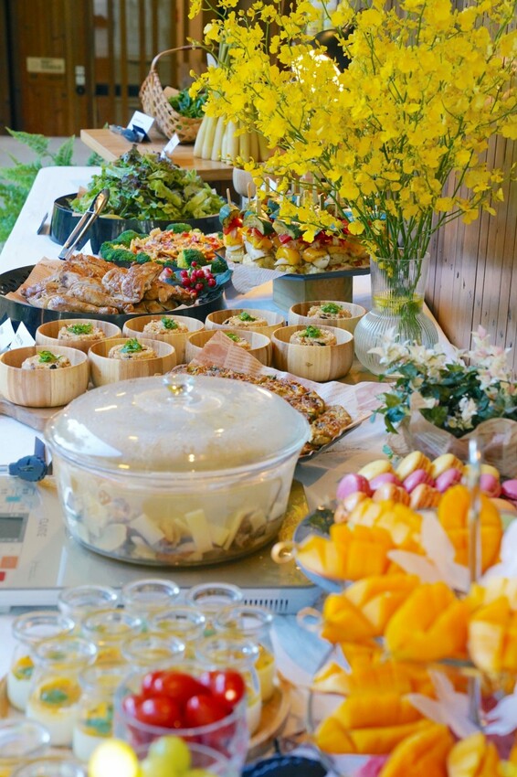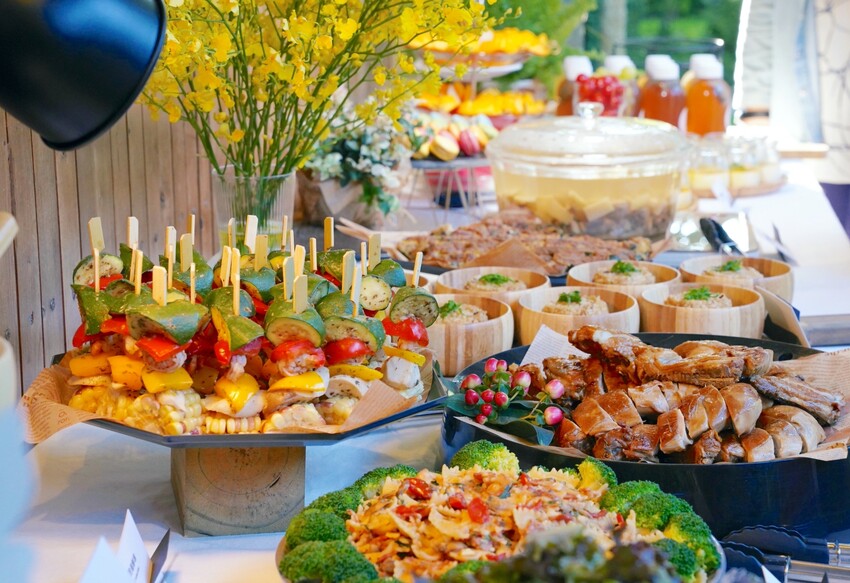 ▼山系戶外螢餐會是埔里農產的集合,有季節時蔬過貓、埔里美人腿皎白筍、埔里小農生菜沙拉、蝴蝶冷麵、埔里刺蔥烘蛋、埔里竹筍飯、百香奶酪、特選冷泡茶、甘蔗雞腿、香檸百香氣泡飲、時蔬海鮮串、手工小餅乾、水果、馬卡龍、媽媽味醬筍鴨湯。