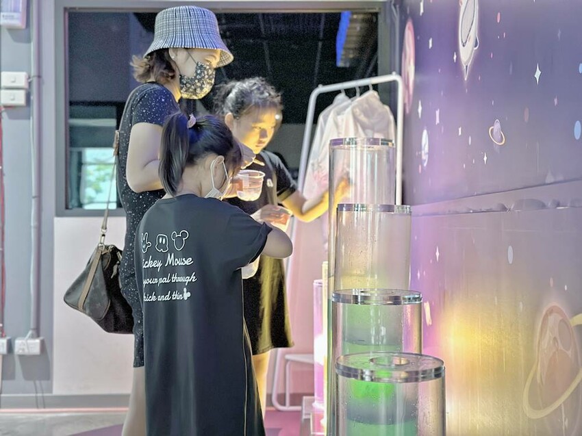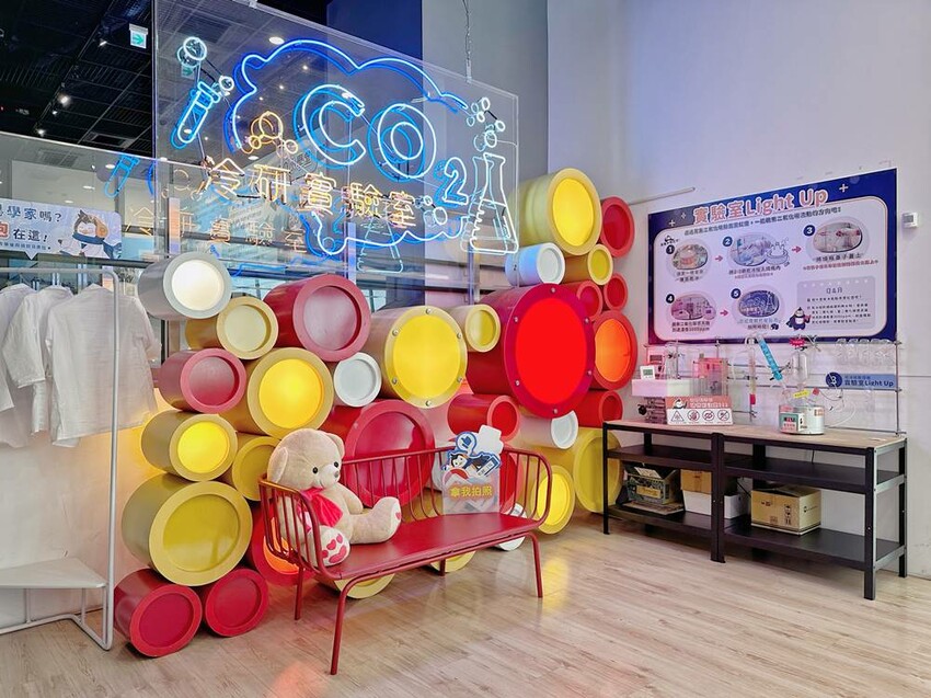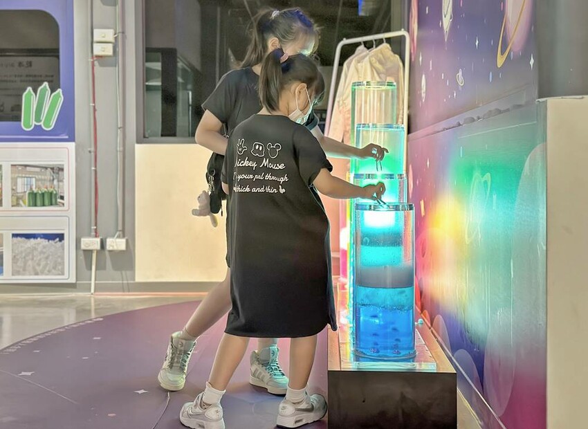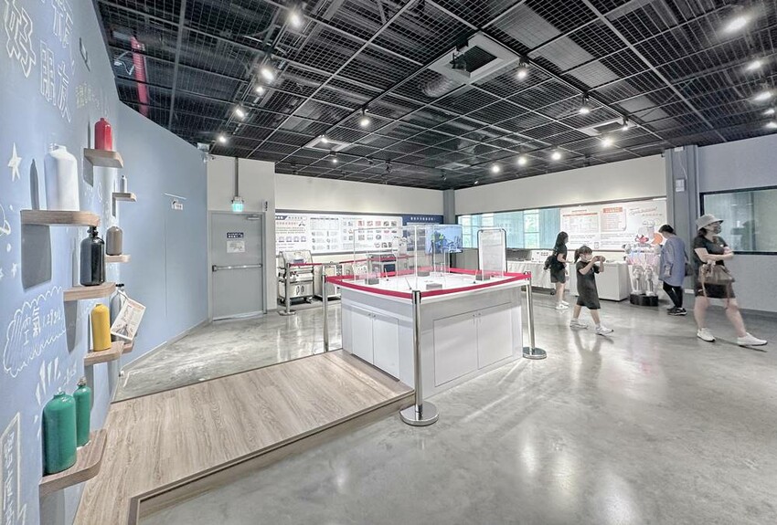 在二樓的展區內當然會有介紹冷研碳索館的歷史簡介、二氧化碳的相關應用、知識以及互動科普等等,還有生產製造參觀走道,在這最吸引大家注目的就是七彩熔岩燈,投入館內所購買的乾冰來體驗,拍照打卡真的很不錯。