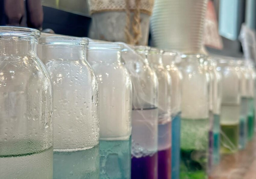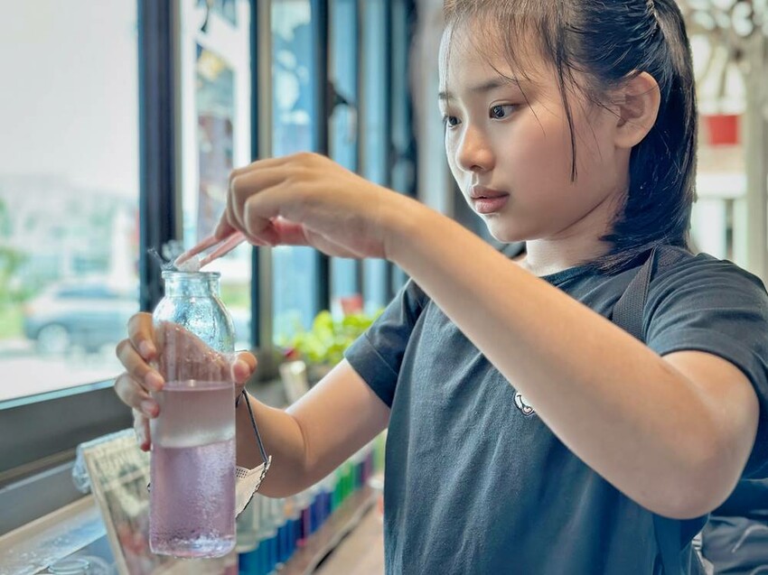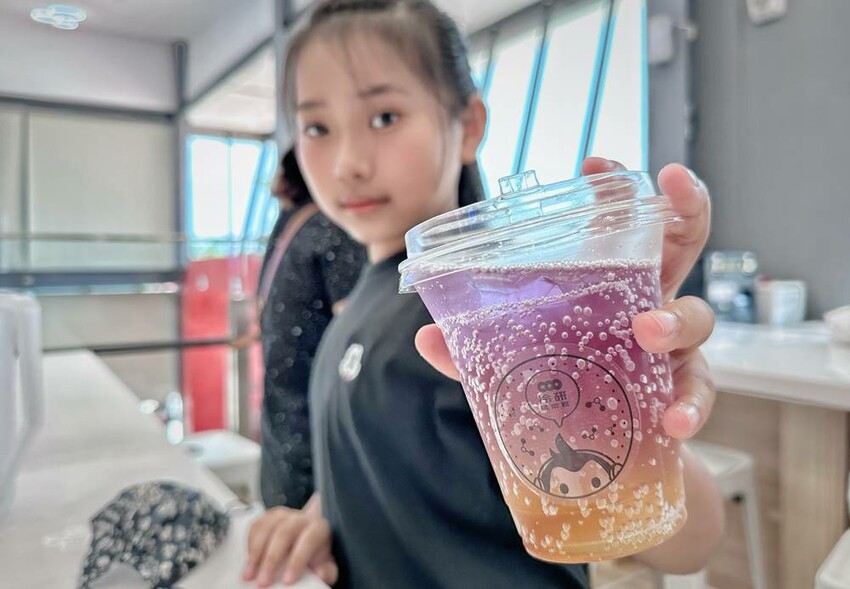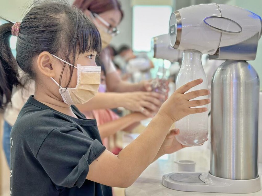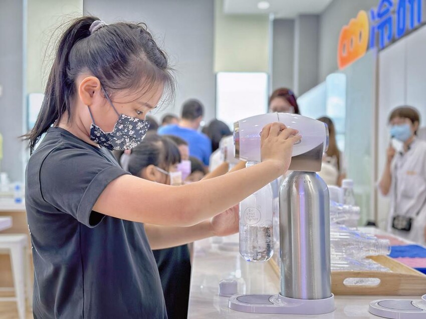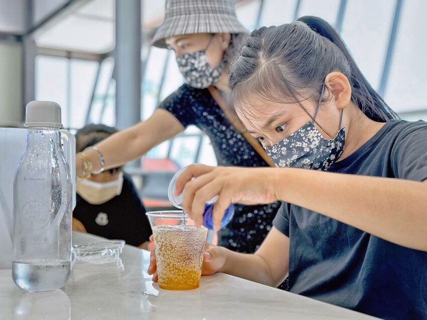 走上二樓,可直接看到DIY的區域,這是需要另外付費才能參加體驗,每個時段的課程都不一樣,詳情可以詢問櫃檯人員,而我們這次體驗”漸層氣泡飲”,簡單說就是利用氣泡機、水、冰塊、蝶豆花、醋飲來製作漸層飲品,整個體驗時間不到30分鐘就結束。