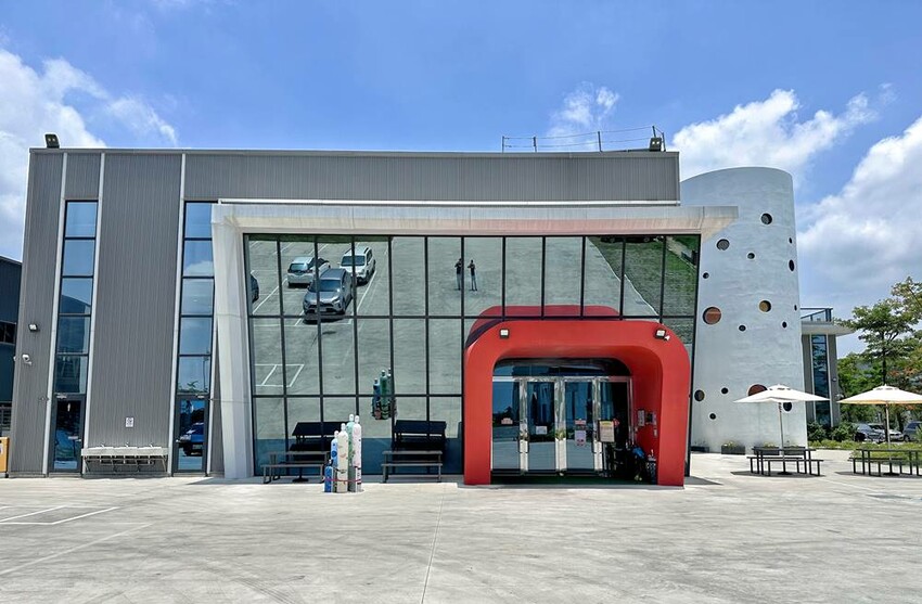 冷研碳索館位在嘉義縣鹿草鄉,基本上直接用導航就可以輕鬆抵達,而冷研碳索館備有戶外大型停車場可停放愛車,外觀看似就是一般的工廠,但建築外觀主要是以大片玻璃鏡面來設計,不少朋友都會利用玻璃鏡面來拍照合影,而在入口處也放置了幾瓶彩繪氣體罐(瓶),意會著這裡是間氣體觀光工廠。