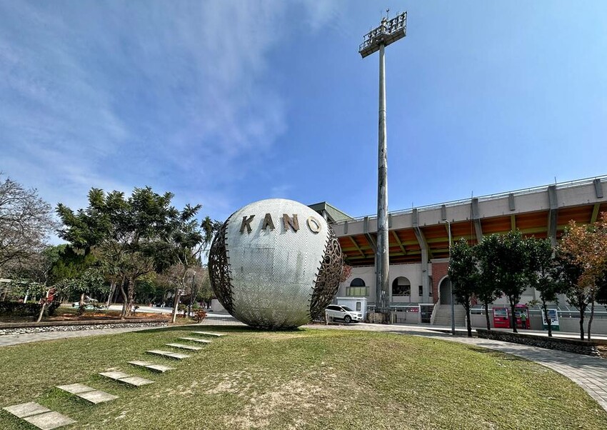 KANO園區有遊客中心,一旁也有個嘉義之森Jmori可以帶著寶貝來這買冰品享用,一旁也有公廁可使用;而KANO園區內有著不少有關於棒球相關的裝置藝術可以拍照打卡,當然這最醒目的超大棒球,可也是不少人都會與它合照的打卡點,而KANO園區內還有個不論是大朋友小朋友來都很愛的超寬版磨石子溜滑梯、滑草場可以玩樂,說真的這一區光讓小朋友來到這就可以玩上大半天去!