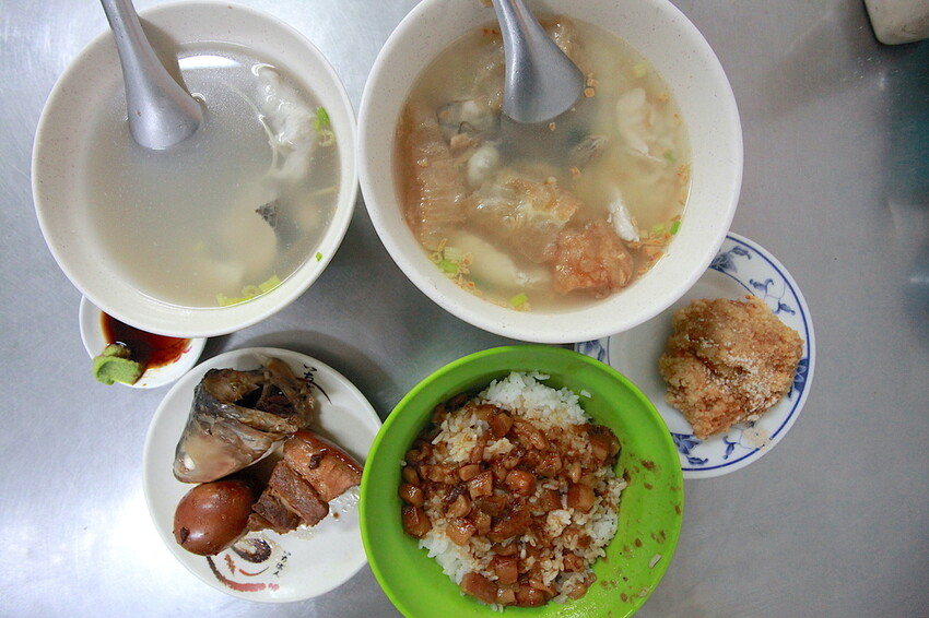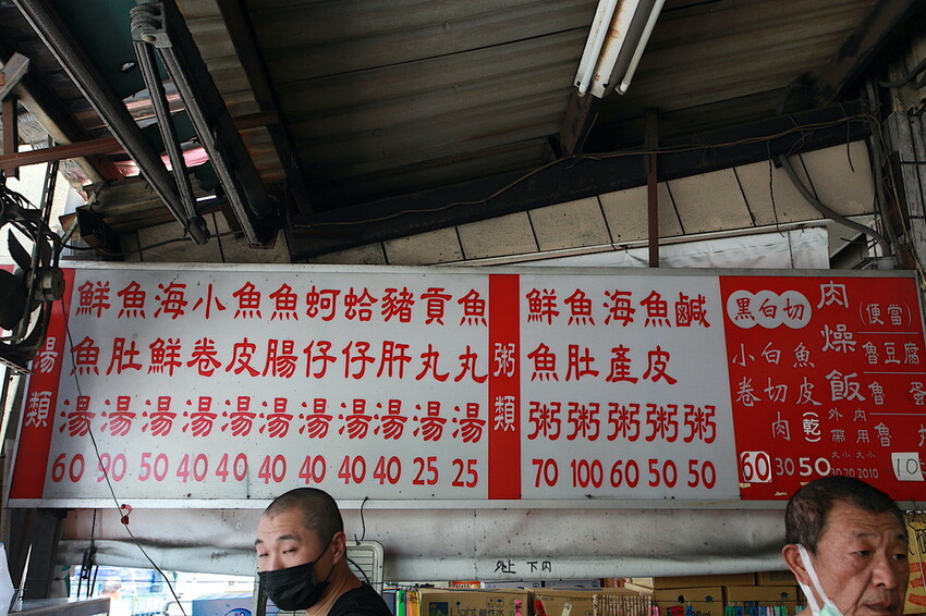 小高點鹹粥50元、海鮮湯50元、肉燥飯(大)20元、炸排骨20元、滷蛋10元、魯爌肉及魯魚頭等。
