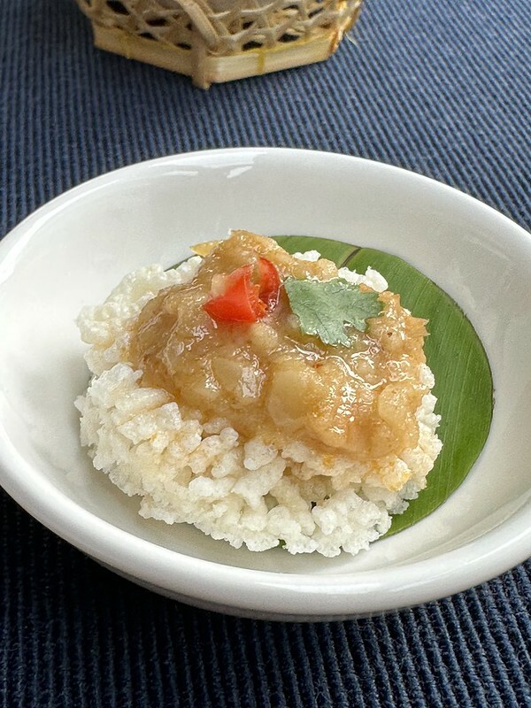 這用蓮花瓣包裹的面康,據說是泰國皇室常食用的小點心;