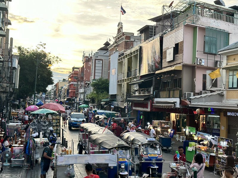 美食巴士穿梭在曼谷老城區的街道中(還好沒塞車),