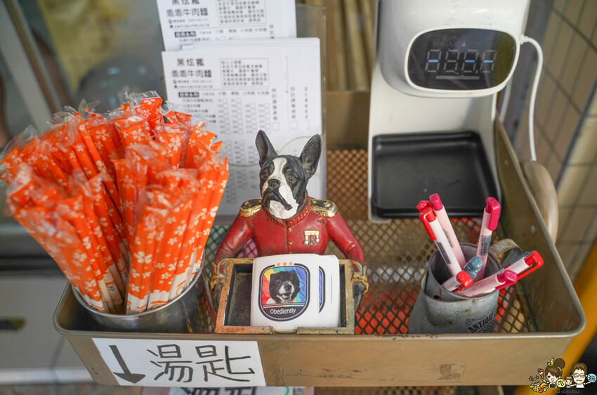 環境都會看到很多博美的照片、手繪圖片、公仔裝飾,很有溫度感的牛肉麵專賣店