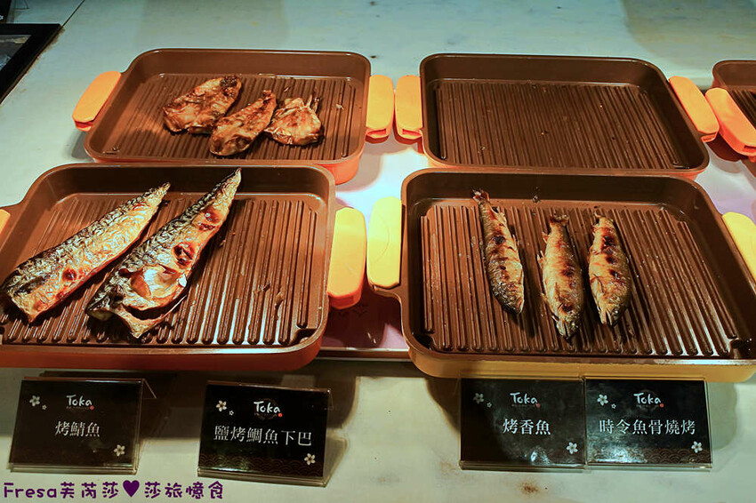 烤鯖魚、鹽烤鯛魚下巴、烤香魚、時令魚骨燒烤.