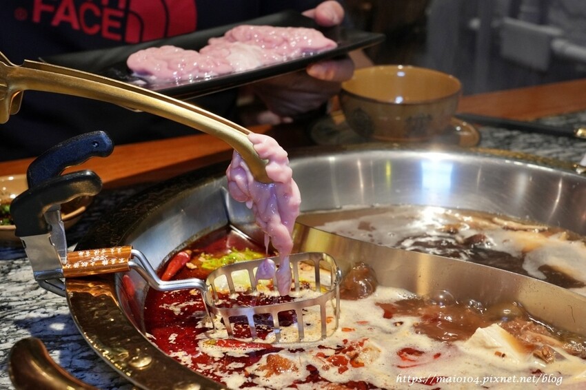 涮豬腦花有特別的容器,放入容器中煮食15分鐘後