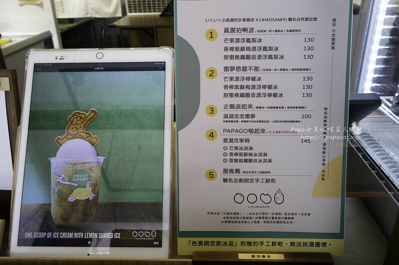 冰品有鳳梨與檸檬冰(基底),還可以加上冰淇淋,想怎搭配先看遠單,選擇障礙建議看聯名款吧,這裡的果昔看起也很不錯。