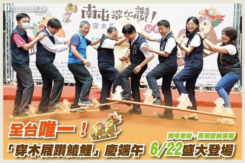 台中南屯端午節當天特地舉辦全台唯一的『穿木屐躦鯪鯉活動』