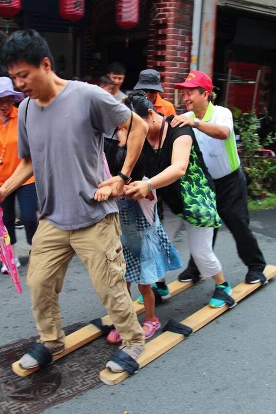 瞧瞧前幾年穿木屐的趣味競賽,必須4個人組隊才能參加的木屐接力賽