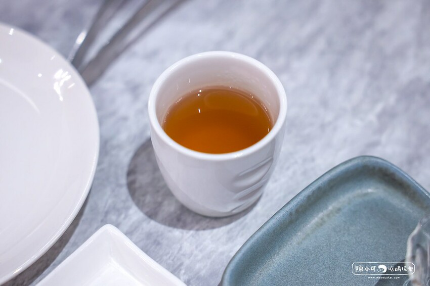 等待朋友來餐廳前,服務人員倒了黑豆穀物茶讓我暖胃,用餐期間也會來續加。
