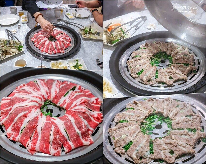 4人豪華套餐可選兩種肉品,每吃鍋物都必點雪花牛,肉質鮮嫩帶有油脂,口感風味佳,肉片下層鋪上豆苗,搭配起來更有層次。