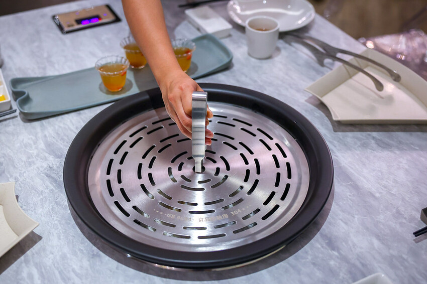 和朋友都是第一次吃到這麼特別的蒸氣鍋,看著服務人員桌邊服務,大家都拿出手機紀錄,聚精會神看著眼前風景。