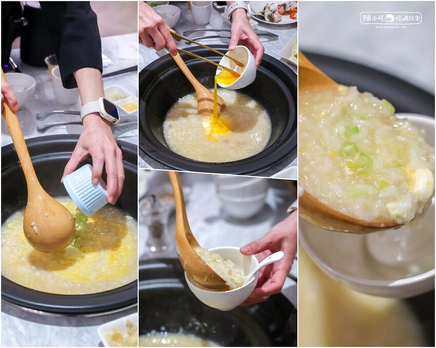 來到讓人期待的粥品,看著各種海鮮、肉品和蔬菜們的加持,鍋底早已注入滿滿的甜味。
