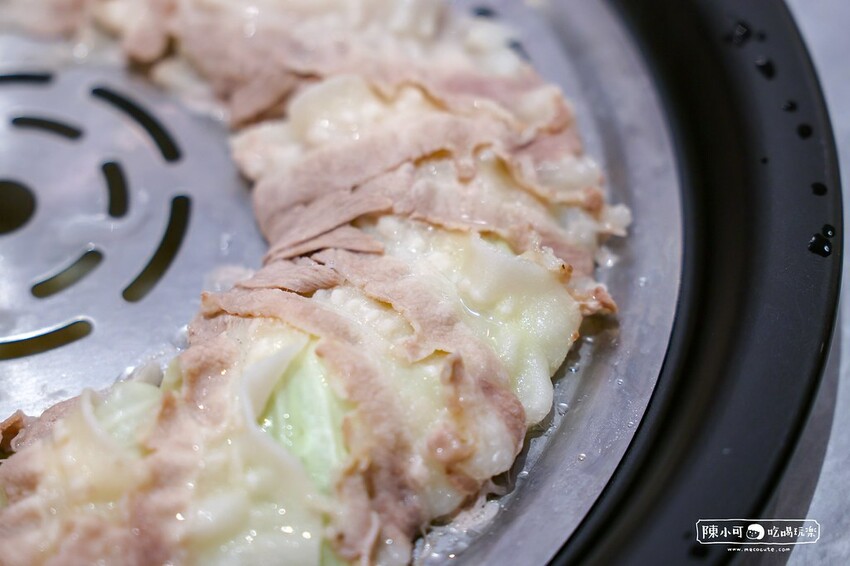 豬五花以高麗菜鋪底,肉片鮮嫩多汁,肥瘦相間不乾柴,加上高麗菜的鮮嫩搭配,沾一點泰式酸辣醬,瞬間提升另一個層次,酸酸辣辣超開胃,因為最後還有海鮮粥,所以就先不單點白飯,身為一個白飯控真想試試搭配白飯!