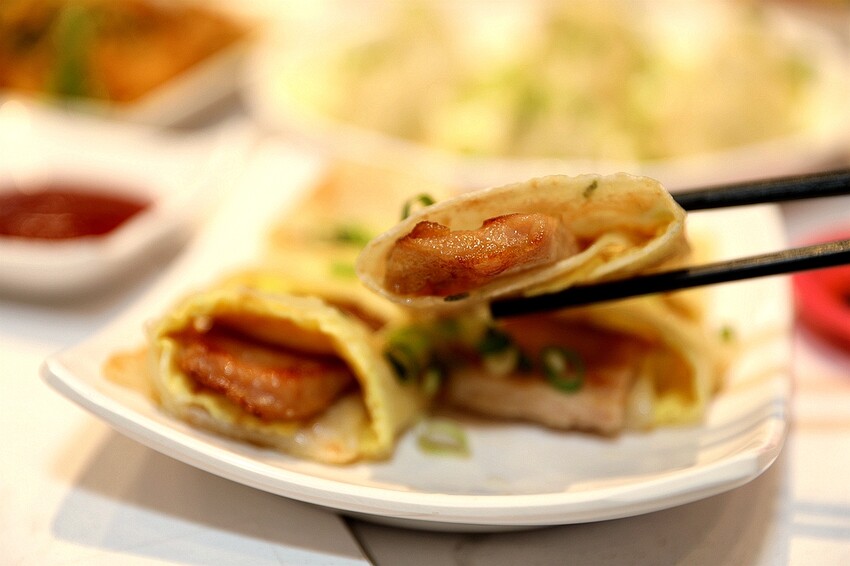 現點現煎的蛋餅就是美味的關鍵 外層餅皮煎至微焦並帶點酥香口感