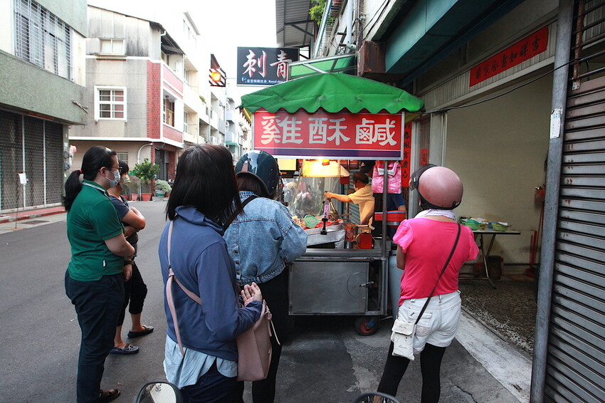 從民權路路口就可看到這鹹酥雞三個字,剛剛開門就擠滿拿取鹹酥雞饕客。
