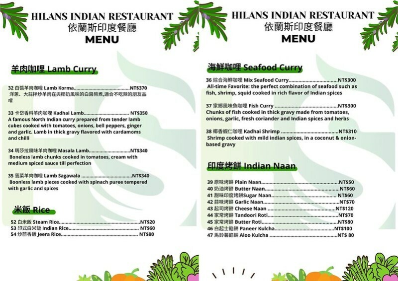 Hilans Indian Restaurant 依蘭斯印度餐廳 -公益路與華美街交叉路口這裡原本是賣素食碗粿的前陣子變成印度餐廳,店內裝潢簡單而粗暴刷展現印度咖哩店的特色-橘黃色調是咖哩色無誤,老闆是印度人。
