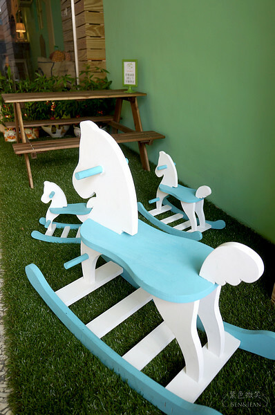 邦比諾的logo及店門口的小木馬,因為媽媽、老婆及剛出生的女兒都屬馬,便以此為設計元素