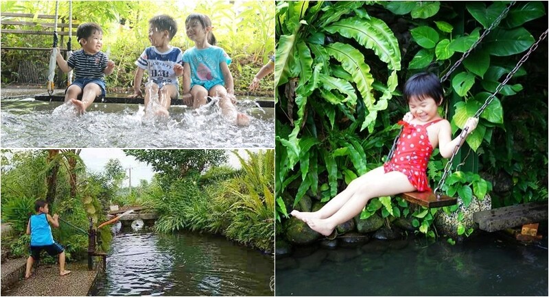花泉休閒農場》清涼戲水花香處處,撈魚捉小蝦,做生態瓶,超沁涼的湧泉上盪鞦韆!100公分以下兒童免費入園