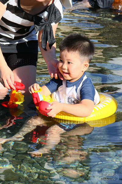 小貝果一開始被冷水嚇到,經過Ben陪伴許久