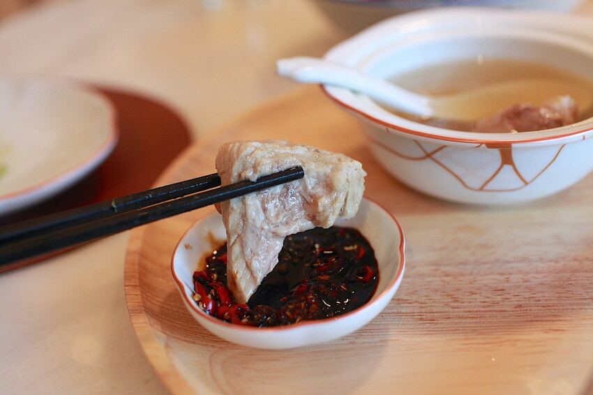 海南雞份量很多雞肉皆有事先去骨處理,這海南雞肉超軟嫩鹹香超級好吃