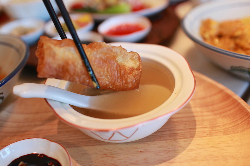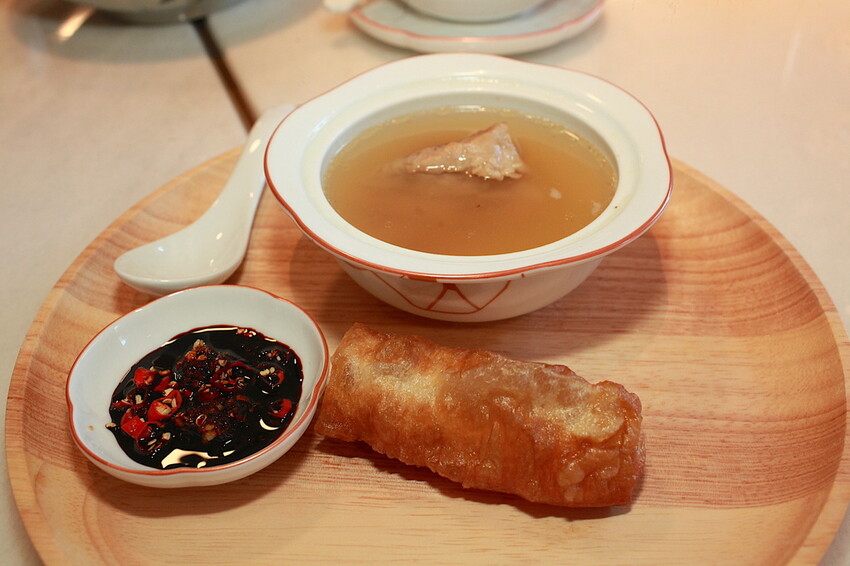 這盤有潮州肉骨茶、油條及佐料等食材。