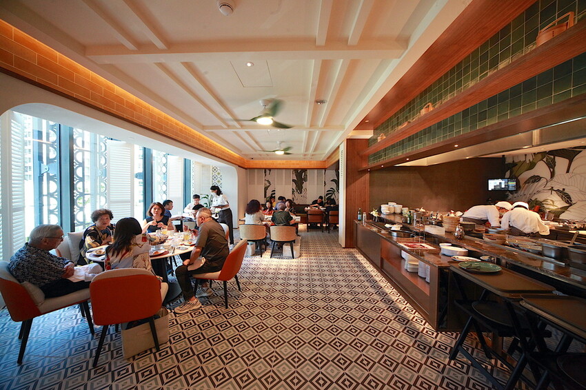 吧台處感受到濃濃的1940年代懷舊的殖民風格特色,往裡走就是「HAWKER好客南洋餐廳」用餐空間。