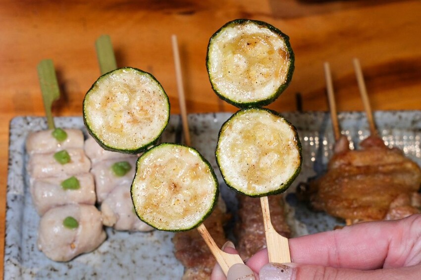 ▼串燒都是以炭火現場燒烤而成,選用星級的高品質桂丁雞,簡單調味保留食材的原味,吃起來鹹度適中,還帶有微微的炭燒香氣~