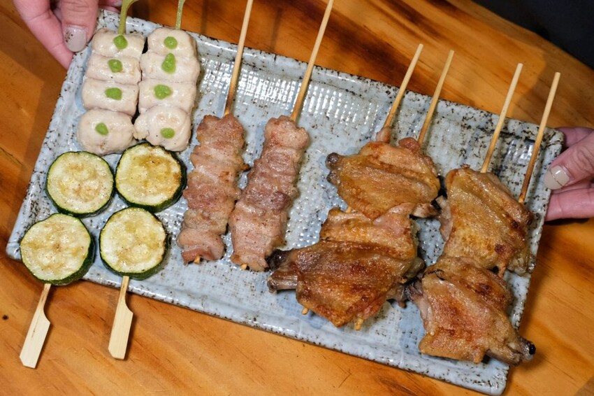 【鳥重地雞燒バーベキュ】以雞肉串燒料理為主打,還有串燒、烤物、海味、蔬菜、冷盤、主食、炒物、炸物和湯物等,以及豐富齊全的酒類品項可搭配。