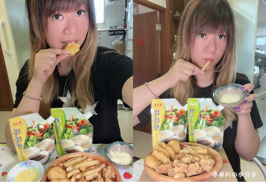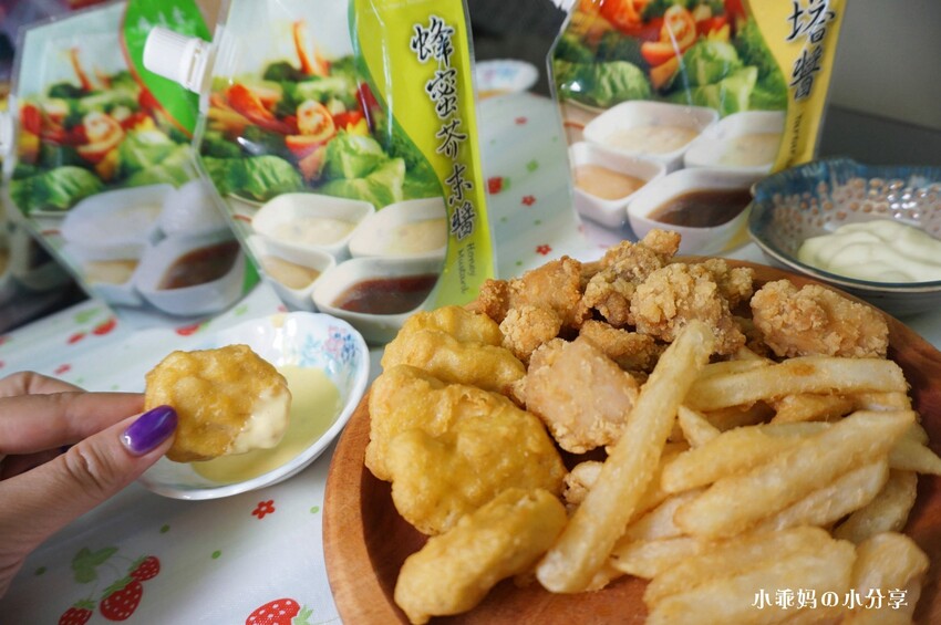 炸物的醬料也是很百搭,這次搭配蜂蜜芥末醬及塔塔醬,讓人不知不覺想一直沾著吃…