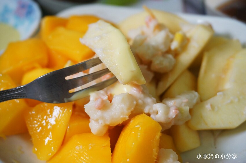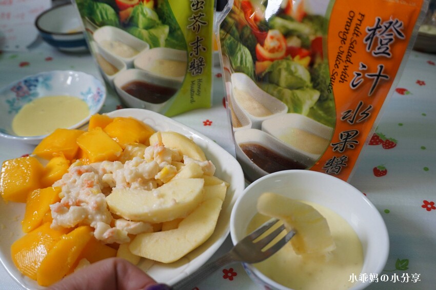 這次小乖媽剛好家裡有芒果跟蘋果,沾了醬真的超級美味!!!