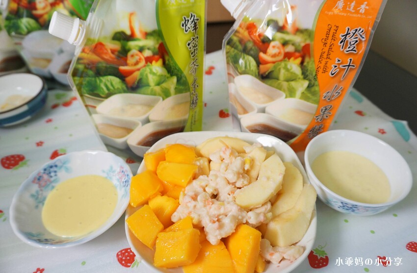 橙汁水果醬建議搭配甜度不高的水果食用,像是芭樂、蘋果、生菜等等,可以整個提高水果的風味喔,而且還是很多餐廳業者指名的獨家水果沙拉醬料唷~